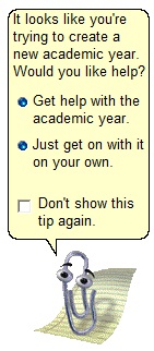 As the title suggests, I’ve been tasked with looking at the structure of the academic year, something Nigel Lindsey did a huge amount of work on previously. As Nigel found out, this is quiet a challenge to say the least (hence the title, I’m hoping a friendly paperclip will pop up with some suggestions). The Bradford Offer made a number of proposals about all sorts of things, but one was about a change in the structure of the year. To cut a long story short, the main points were around seeing if we could start the year later (to give more time for preparation and for students to get here) and to fit in supplementary assessments in before the end of July (mainly to allow students to plan better for September). Clearly, starting later and ending sooner are not necessarily compatible aims!